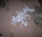 Обе половины после формования были склеены на Ухупоре между собой и со скелетом из той-же 6мм потолочки. Поверх шва прихвачено скотчем и слегка просушено феном. После остывания весь скотч (с обоих половинок) был аккуратно снят. Вот такой кашалот получился за пару часов работы. Вес кашалота 38,1гр