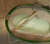 Пенопластовый болван фонаря слегка обтёр вазелином и окунул в тазик со свежим гипсом. Через пол-часа (гипс быстрый) выдернул… Пузырей воздуха очень много, но это нас не остановит