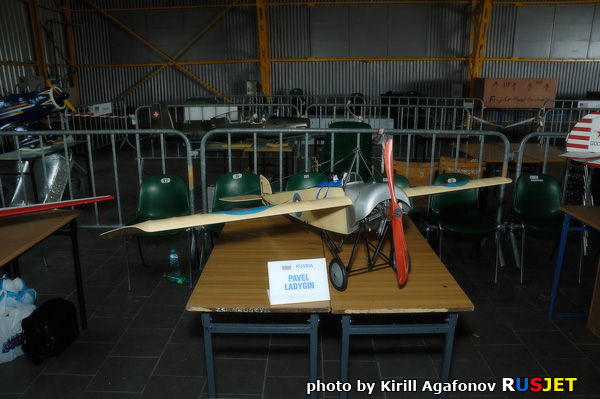 Очень интересную модель привез на Чемпионат один из польских спортсменов. Вот только ручка управления у модели только одна, и крутить ее надо прямо из кабины. На фото рядом с моделью один из членов нашей сборной