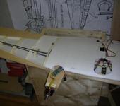 Начал склейку центроплана. Материалы: потолочка, фанера 5 мм, пенопласт ПС-60, уголь 6 мм, уголь квадрат, латунь, текстолит. Усиление потолочки - перкаль на аквалаке.