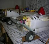 На этих фото хорошо видно, как к берёзовой 5 мм фанере прикреплены ретракты и всё эно склеено в силовую коробку с угольными 6 мм трубами. Получилось достаточно прочно и жёстко. Ещё будет по потолочке перкаль на аквалаке.