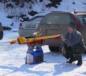 а здесь перегрузил самик фотиком и нехватило тяги на взлет. Хотя с этим весом (170гр.) со снега взлетал) Но снег и вода разные субстанции.
