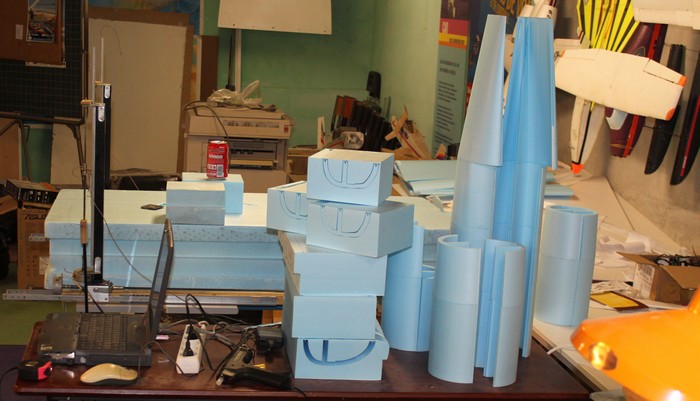 Про станок подробнее рассказвывать долго, а в общем принцип, горячая струна режет пенопласт под управлением компьютера. На форуме или просто в инете поищите по слову CNC пенорез, CNC Foamcut… Найдете много инфы.