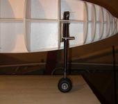 Итак, работа потихоньку движется. Долго искалась труба для передней стойки шасси, в конце концов использовалась палка от лыж. Переднее колесо сделано управляемым, надеюсь угла поворота хватит для уверенного руления.