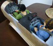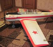 После некоторых раздумий, захотелось сделать полукопию какого нибуть весёленького самолёта. Выбор пал на Як-52, с его бодро задранным хвостиком и по птичьи поджатыми лапками-шасси. Да и прототип, по непонятным причинам, не затасканный у моделистов. Делал в расчёте на простой пилотаж,основные материалы- шариковый пенопласт и бальза. Так как это всё таки полукопия, приходилось постоянно бороться с искушением излишней деталировки и усложнения. Но на кабине пилотов решил не экономить- выполнил в почти полную глубину (до крыла), правда приборные панели распечатал на принтере с фотографий из Сети.