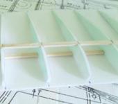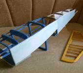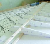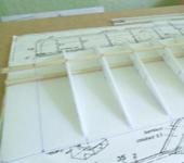 Прислушался к вашим советам и сделал отклонение РВ на 25 30 градусов вот последнии фото. Заклеил хвост и приступил к крылу вырезал шпангоуты.