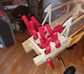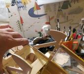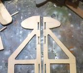 Соответственно, вооружившись фотографиями и воображением отрисовал детали и выпилил их из фанеры трешки, дорабатывая по месту. Осталось выпилить наклонную деталь распирающую стойку которая держит переднюю часть крыла, опилить в размер “уши” на стойке и мелочь для того, что бы связать рамку бокового окна со стойкой. И можно будет клеить морду.