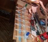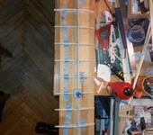Аккуратно разобрал крыло на три части, выдернул лонжерон, разобрал его, зачистил. По единственной почти сохранившейся фанерной нервюре нарезал/напилил новых из фанеры и бальзы. Единственной действительно ровной поверхностью в доме, оказалась старая жд модельная диорама собранная на икеевской полке. На ней и собрал обратно лонжерон с нервюрами. При сборке малость промахнулся, одна нервюра встала чуть криво, но разбирать не буду. Торчащую часть запилил вровень с остальными, недостающую надставлю. Попутно зачистил две “внешние” части крыла (передняя кромка с законцовкой и обшивкой и задняя кромка с обшивкой) от остатков нервюр, клея, бальзово-фанерной трухи, и предыдущего ремонта.