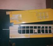 Второе крыло тоже пришлось немного разобрать, для того, что бы вынуть остатки пластины связывающей половинки. Для этого пришлось снять кусок обшивки, фанерную пластину с лонжерона и две нервюры. Все извлеченное изготовлено заново и собрано обратно. На данный момент оба крыла отремонтированы, собраны, готовы к обтяжке и склеивании в одно целое. Пока жду пленку, раздумываю, то ли переобтянуть оба крыла целиком и потерять надпись, то ли одно заплатками, а другое целиком 😃