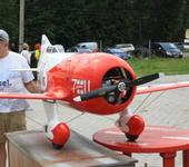 Ах, как я угадал! А дверь у меня тоже съемная, на саморезах. Пилот мне нравится,- уверенный, целеустремленный вид, горящий взор в сумерках фюзеляжа. Джими Дулитл может быть спокоен. Вообще самолет сделан с душой, требует выгула с себе подобными. А посему, у меня к Вам, Андрей, деловое предложение. В следующем году собираюсь поехать на фестиваль в Германию. Могли бы поехать вместе, как команда самолетолюбителей из России. Например, GEE BEE RAСING REVIVALS, или что то в этом роде. Ну если все обойдется,конечно. А пока тренируемся вот так. На лыжах…