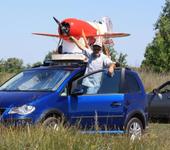 Андрей, спасибо за поучительные фото. Еще раз убедился в правильности пути избранного. А козел выше всяких похвал. Просто, надежно, функционально. Появилось намерение к весне соорудить себе такого. А уменя вот так. Самолет нравится не только мне. На двух крайних фото видна конструктивная ошибка. Приемник, БЭК, машина рудера, выключатель и рама вместе весят примерно 400 гр. Что равносильно примерно 1600 гр в носовой части пропорционально разности плеч. Вес алюминиевых труб вместе с выпускными коллекторами и подвесом 980 гр.