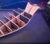 Каркас из фанеры обшитый по корабельному и покрытый замазкой.