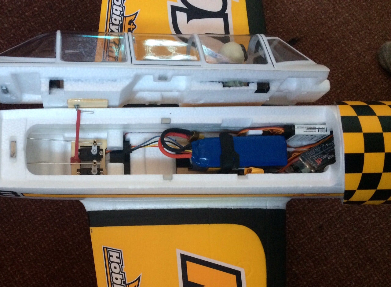 Сделал по мануалу и как у америкосов раскладку потрохов с аккумом 3000А. Центровка дюже задняя. Хотел грузиками в морду обойтись, но вродь пенолёт… как-то не комильфо. Всё переделал. Приёмник назад с кишками, аккум вперёд. Теперь гууд.