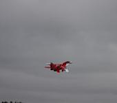 Гидравлика шасси (выпуск-уборка осуществляется гидравлической системой) отработала четко и сегодня при -3С. Турбины JetCat P-120SE позволяю работать газом без задержек, то есть газ добавляется в момент когда уже модель на вертикали - все-таки 25 кг тяги дает о себе знать! Очень помогают отклоняемые носки на крыльях, работа которых интегрирована в общую систему управления - угол выпуска носков зависит от углов атаки.