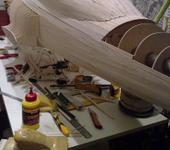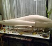 Олег, я не знаю что получится, но мне кажется если не сошлифовывать до толщины в 1 мм, провиснуть не должно. Это мой первый эксперимент в плане постройки мастер-модели по такой технологии. Геральд Хаф обшивал СУ-27 4мм бальзой, но там и размер побольше и шаг шпангоутов раз в пять побольше. Вопчем, будем посмотреть…