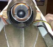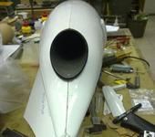 Кокон+воздуховоды= идеальный вариант установки двигателя в реактивной модели. Наши рекомендации по силовой установке на эту модель: двигатели 60-100 класса. Теоретически конечно можно поставить и мотор большего класса, но при наличии дополнительных окон под забор воздуха и придется смириться с жаровой трубой большого диаметра, которая обезобразит внешний облик хвостовой части этой изящной машины. Кокон и прочие излишества за отдельные, так сказать. Труба будет комплектоваться обычной эжекционной воронкой из углепластика.