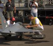потому что модель не одна уникальная в своём роде как Як 130, а уже как минимум 2. А это уже не 50 а 30 очков. А я их не получил, потому, что не подал презентацияю за 2 месяца до начала соревнований как надо было. И в этих очках мне отказали. Остался только бонус за оригинальность нам с Сатовским по 50 очков, т.к. этого самолета небыло ранее на этих соревнованиях. Вопрос в другом, как Сильвестри со своим посылочным Ф-16, который красился прямо на поле, а маркировка наносилась там же фламастером от руки, с плоским прозрачным пилотом в кабине 😃 оказался вторым по стенду ??? Видимо итальянский судья из бригады судий провёл колоссальную работу.