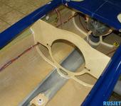 Установка турбины. Раньше уже было написано почему выбор остановился на JetCat Р100. Родная жаровая труба улетела на помойку, мотораму тоже пришлось сломать. Нужно изготовить всего четыре детали. Собственно сами перекладины моторамы и две усиливающие накладки на передний шпангоут. Все аккуратно размечается и вклеивается. В заднем шпангоуте необходимо прорезать дополнительные отверстия для отвода избыточного объёма воздуха из фюзеляжа. Пластиковые сопла приклеиваются на места и в них вырезаются сектора, которые могут обгореть.