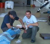 Модель промеряли лазерным инструментом, потом нагрузили мешками с песком, более 300кг, для проверки прочности конструкции, промеряли ещё раз, и после снятия мешков окончательная промерка. Потом было выдано разрешение на старт. Примерно в 13:30 были запущены обе турбины JC P-200, после пробежки, примерно около 80м, 48кг модели под углом 60° ушли в воздух…