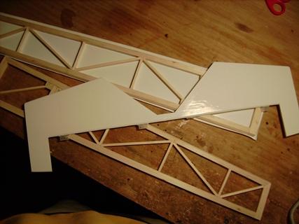 - Крыло резаное струной из любого пенопласта, с сосновыми лонжеронами. Оклеенное бумагой на ПВА. Кромки сосновые. Элероны коропласт, эсли по барски - бальзовые.