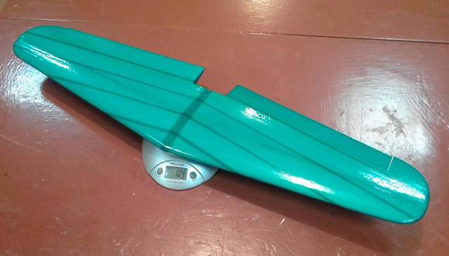 Не самое большое оно. Из 25г, 18 приходится на стабилизатор, который (как и киль) взрезан из 2 мм сотового полипропилена и усилен угольной палочкой диаметров 2 мм при ее длине 20 см.