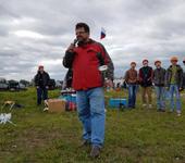 Ну я приехал на соревнования, подлетел перед ними, посмотреть как ведет себя модель в воздухе, ну и мне не очень понравился результат, я понял, что боя у меня точно не получится, а буду я всё время стоять против ветра с лентой на хвосте. Ну я как-то немного потерял желание участвовать. Пригласил я с собой двух пионеров, которые тоже не участвовали.