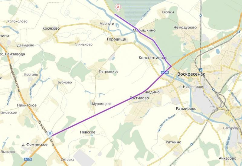 Схема проезда от поста “81км” на пересечении М5 и A108