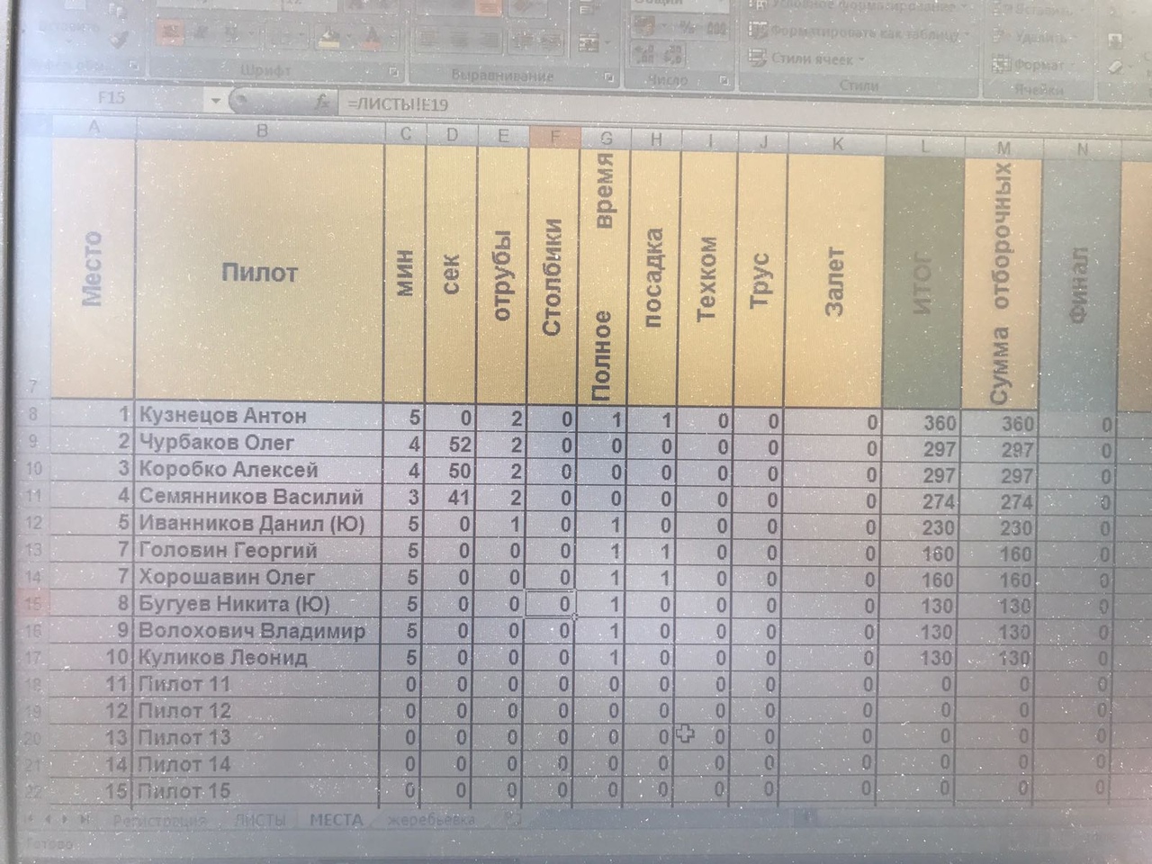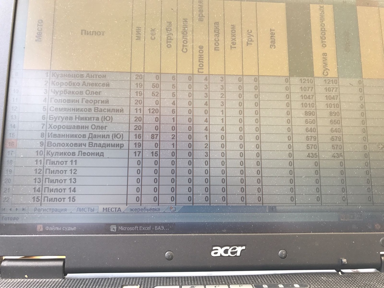 Так как я был ответственным за проведение союзного старта, хочу сразу же извинится перед пилотами за то, что были нюансы и заминки, такие как забытые мною весы. Перед началом регистрации метнулся в местный строительный магазин, но, к сожалению , весов там не нашёл. Путём общего обсуждения, решили не проводить техком, поэтому в таблице в этом столбике у всех 0.