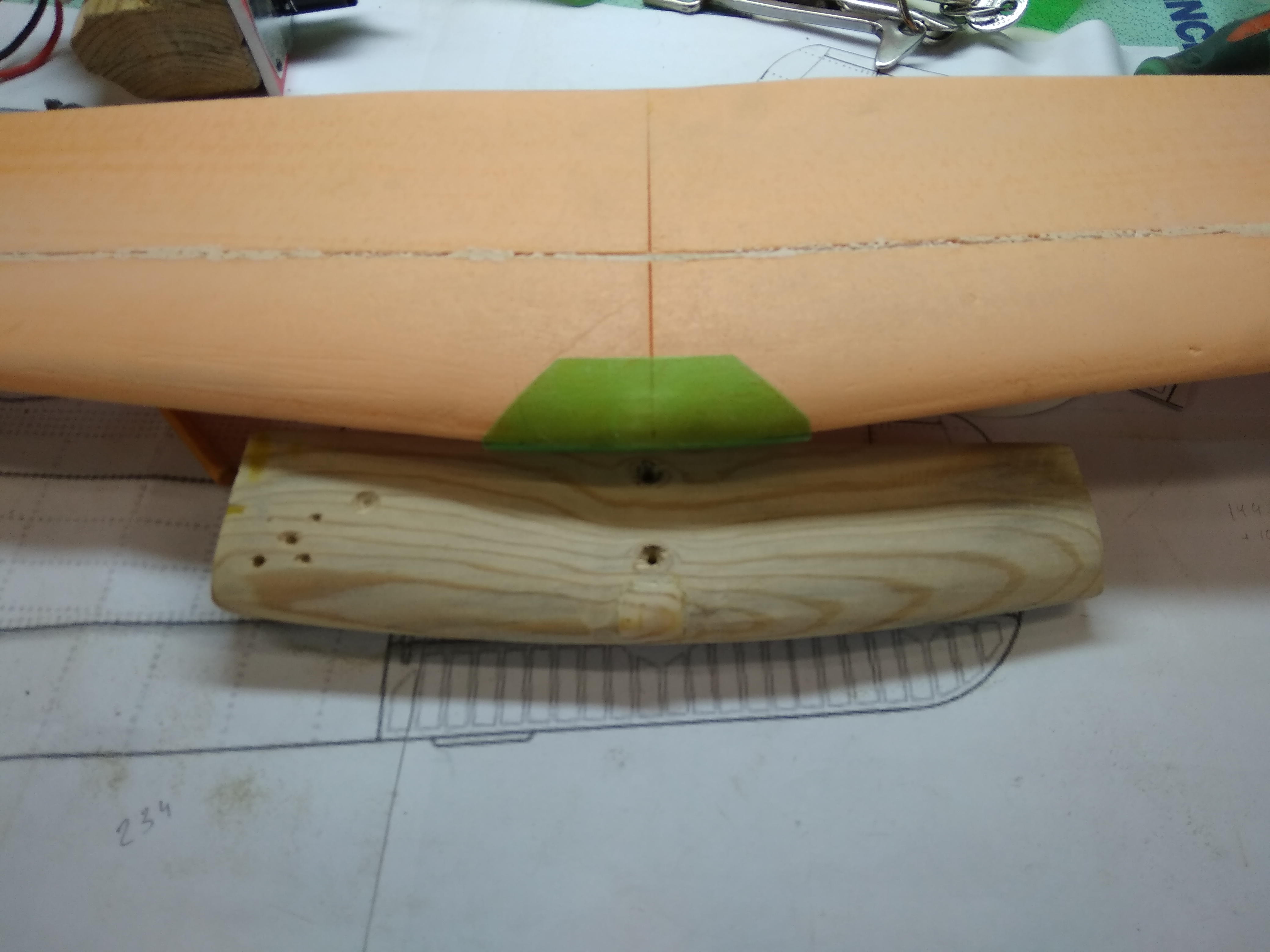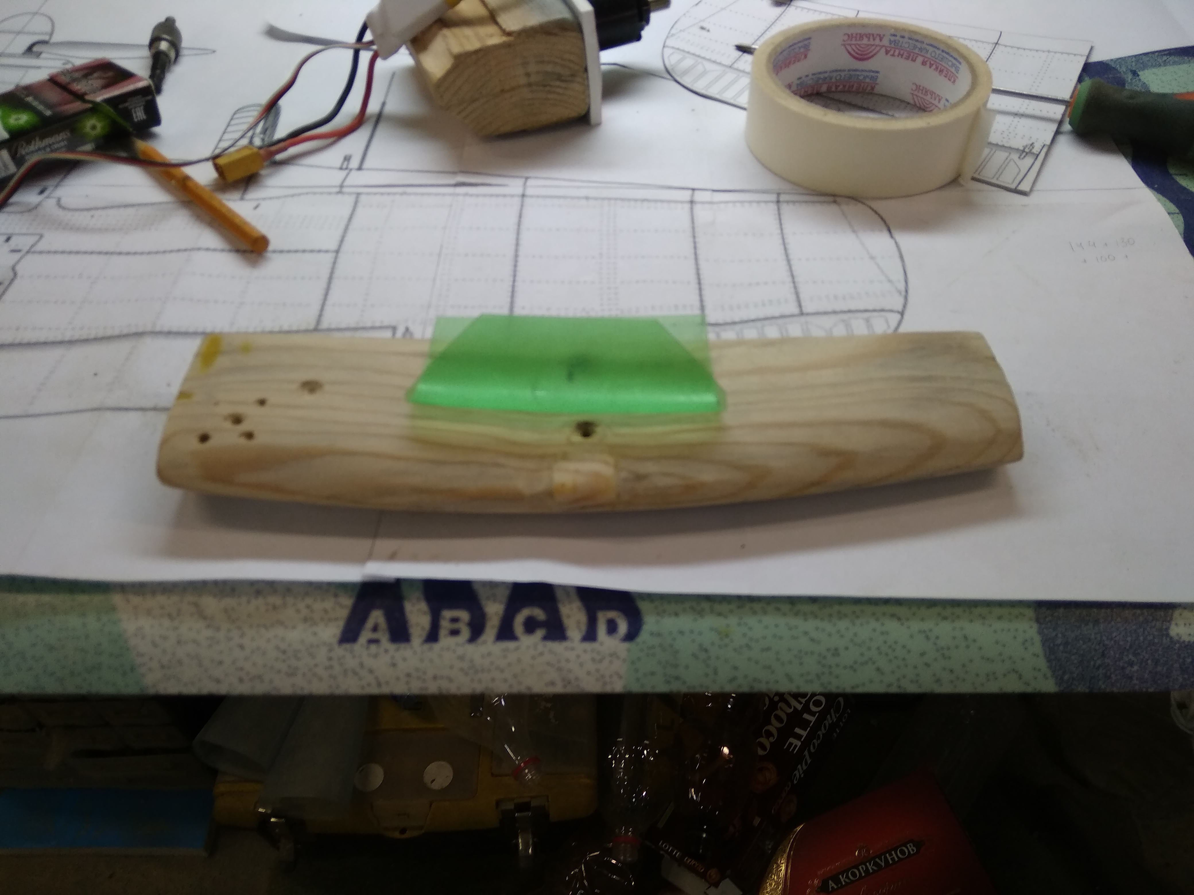 Сделал ещё одну приспособу для изготовления накладки на переднюю кромку центроплана, в этом месте давят резинки и жёсткость нужна несколько повышенная.