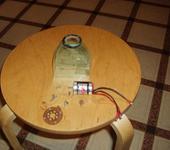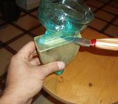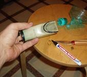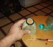 “Ухопор” прекрасно клеит текстолит к лексану . Место очень нагруженное , поэтому промазываю только снаружи по колечку . Держит хорошо .Наилучшие бутылки - от “Очаковского” кваса - 1 литр. Резьба (М3) в текстолите нарезается обычным метчиком (2 номер) , зажатым в дрель .Собственно моторама - дырявый кружок из фольгированного стеклотекстолита 1,5 мм . Можно ставить обычную штатную крестовину .