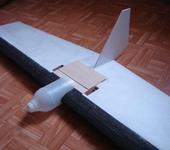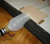 …Бутылка из под клея “Титан”, крепление двумя саморезами во вклеенную в центроплан бобышку сверху и снизу, для страховки ещё полоска скотча двухстороннего снизу. …