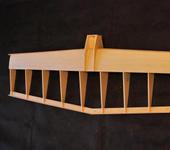построил я вот такую “шляпу”. самолётик полностью бальзовый, обтянут термоплёнкой. технология полностью наборного крыла обеспечила приемлемую жёсткость. это моя первая бойцовка. до этого ими ни когда не занимался. летит самолёт хорошо, ровненько, очень устойчив в небе. но хоть это чудо и полетело для меня всё равно остаётся большой загадкой по каким законам оно летает… может оно как шмель…