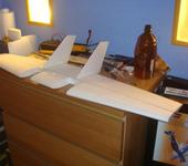 Для тех, кто невнимательно читал выше и/или не знает из чего делается боцовка от Зазулина: Крыло состоит из двух консолей и центроплана. Все режется из ЕПП.