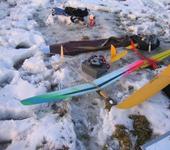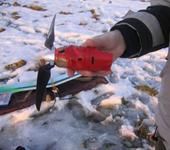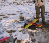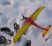 Но были толи проблемы с аппаратурой, толи просто помехи сильные, когда улетал чуть подальше- сразу сильно дергать начинало, чуть ли бочки сам не крутил, в итоге во втором полете при заходе на посадку издалека самолет в очередной раз переколбасило (скорость не терял) и он вошел в штопор, метрах на 5 удалось остановить вращение, но высоты не хватило и в землю вошел почти вертикально, а снег сантиметров 7 всего, дальше лед.