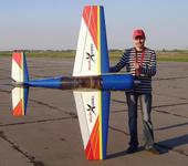Косанул мотор еще немного вверх (под нижними стойками теперь по 3 мм) и двинул центровку еще назад (теперь 40% САХ), при увеличении-уменьшении оборотов летит в горизонте. В инверте - немного “на ручке”. При выполнении “стены” прилипает к вертикали и вверх совсем не лезет. Плоский штопор делает “плоско”, а если газ на максимум, то даже набирает высоту, но приходится попотеть, чтобы не вываливался из фигуры.