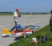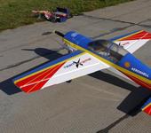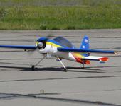 Самолет Як-54 180 от Hyperion размах 2,16 м, взлетный вес 7800 г, двигатель DL-50, воздушный винт Vitaprop Carbon 22x10, центровка 35% САХ. Круток нет.