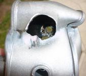 Настраивал газ на новой аппе, чтобы ничего не сдуло развернул самолёт боком к машине, перегородив выезд другому самолёту. По окончанию настройки начал убирать самолёт, пошёл выдернуть отвертку. Тем временем пилот этого самолёта завёл двигатель, поскольку борт у него включается отдельно от зажигания, а он сначала включил зажигание, при включении сервы дёрнулись и газ врубился на полную, ну я прореагировать неуспел:(. Вот результат. Владелец второго самолёта отделался лишь винтом и пробитой плёнкой на крыле. Мой вылетов 10 всего сделал, только во вкус вошёл