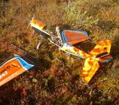 причина “САМ ДУРАК”. Выход с фигуры на малой высоте и попытка резкого левого разворота с уходом с зоны полетов для посадки. Но во время разворота не учел порывистый ветер…и тупо придавило к земле. Полный газ не спас так как скорость потеряна и началось размахивание крыльями…ну и в мох…