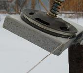Для посадки в ограниченном пространстве лучше использовать натянутый поперёк траектории полёта шнур намотанный с каждого конца на тормозные барабаны. По-взрослому это называется посадкой на трос (начало с 1942 года), в отличии от палубной посадки (начало с 1913 года) с помощью троса. inno.ru/project/30226 . Для RC-моделей тросом может служить шнур Ф=1 мм. Для моделей шасси надо удалить, а поставить тормозной крюк, который легче шасси. Крюк поворачиваеся вокруг точки, находящейся выше и позади центра тяжести (запатентовано в РФ и Великобритании). Зацепление за шнур приводит сначала к его растяжению , а затем к разматыванию с тормозных барабанов. Например, на видео (не вкладывается) показана посадка летящего иммитатора модели со скоростью около 15 м в сек. Съёмка 30 кадров в сек. На фото показан один тормозной барабан и общий вид ЛА с тормозным крюком. Процесс посадки упрощен до ведения модели самолёта (желательно горизонтально) под тросом и зацепления крюка за шнур. Отклонения по ведению не смертельны.