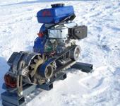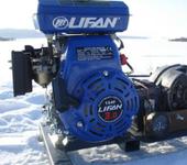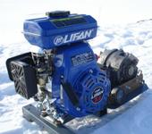 На гене поменял шкив на “десяточный” под плоский ремень .Ведущий шкив (диам. 70 мм) заказал токарю .Габариты 53х40х30 , масса около 16 кг.Сначала собрал без электросхемы .Запустил -сразу же вылез один недостаток .Из-за отсутствия массивного основания на номинальных оборотах генератор трясло и по укатанному снегу он пытался " ехать"-уменьшил обороты и решил для начала мотор немного обкатать .После 2 часовой обкатки Лифанчик заработал гораздо ровнее -особенно на малых оборотах. Собрал электросхему, на скорую руку прикрутил гелевый аккумулятор ,запустил, обороты поставил тысячи полторы (визуально) -нагрузил 2 галогенки по 100 вт. Мотор слегка добавил газу -генерация устойчивая и никуда не" едет".Поехал в поле -полетал, позаряжал- одним словом-вещь ! Тарахтит себе в сторонке и особого внимания к себе не требует. Основные прикидки оказались верными .Работа конечно не закончена -буду думать как что улучшить.