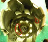 Царапины посадочного места заднего подшипника, к счастью новый подшипник садится туда туго.