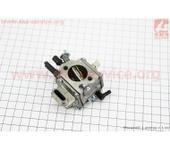 Добрый день! Опыта в конверсионной теме пока нет. Учусь. Но коль “гуру” молчат, то поделюсь с Вами тем, что мне посоветовали. У меня мотор тоже от бензокосы. 58см3. Карбюратор на нем вот такой: Его рекомендовали поменять на карбюратор от косы у которой объем больше . Напрмер от косы Штиль Маркировка карбюраторов: MS-440. MS-461.MS-066. Это для объемов 70.1см3, 76см3,и 91см3. Там весь смысл в том чтобы мотор смог раскручивать винты 24х8 или даже 26х8. Штиль выбран как пример. Можно использовать от Партнера или Хускварны, Оригинальные будут конечно подороже, но можно подобрать и неплохие вполне рабочие клоны. Ниже карбюратор MS-066 китайский.В общем как то так. С уважением.