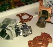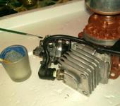 Сергей, сам сижу, но жжет!!! Не терпится встретить утро, дать проснуться соседям ( люди хорошие, авиамоделизм любят) и крутануть на стенде. Прелесть в том, что конструктивно эта зажатость очень легко устраняется, т.е. расширить выпуск можно не снимая со стенда. Хотя чисто субъективно общая площадь сечения очень близка к сечению выпуска на голове, там четыре рабочих патрубка. И в принципе по объему система примерно 400 сс .