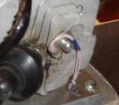 Термосопротивление в стеклянном корпусе, работает до 250 град. Вклеено в зажим из алюминиевой полосы. Крепится возле свечи на болт, там резьбовое отверстие есть.