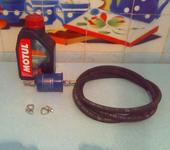 Горючку отстоял, процедил через фильтр для инжекторов. В бак бросил оригинальный сайтовский - губка. Магистральный ХАН-143 не ставил. Масло Мотюль - 800.