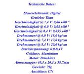 Так вычетал на форуме. Уже купил, проверил скорость у них конечно сумашедшая. На будущее буду знать. Читал разные мнения, как говорят тысяча людей и столько же мнений. Форум курил целую неделю, потом психанул и купил эти. На РН ВЗЯЛ 25кг на РВ две по 20кг на элероны тоже 20кг. Газ Хайтек HV digital. Как то так. Параметры ниже