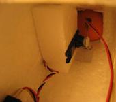 Сегодня убрал лишнее в подкрыльном блоке, теперь туда ходовая батарея войдет как там и была. Установил сервы на хвостовую балку - для раддера вертикально, прямо в шов, для элеватора горизонтально. Прожег канал для проводов серв.