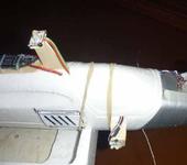 Платы автопилота расположены “на ребро” разъемом вверх возле правого борта… Приемник FrSky (телеметрийный) возле другого борта… Между ними кусочек пенопласта… Датчик скорости приклеен двусторонним скотчем к правому борту, “трубка Пито” сделана из кусочка 3-х милиметровой трубки от телескопической антенны и соединена со штуцером датчика скорости кусочком силиконовой трубки… Датчик высоты не закреплен - болтается просто так в проводах в носу…GPS приклеен двусторонним скотчем к верхней стенке носа… Датчик температуры закреплен на консоли вертикальных пирометров…