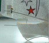 Шпилька - из аллюминиевой тяги. Проходит через пластмассовые площадки вклееные в пенопласт стабилизатора и хвоста. Так как сам стабилизатор доловольно крепко входит в естесвенный паз, одной шпильки оказалось достаточно.