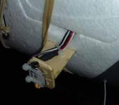 Платы автопилота расположены “на ребро” разъемом вверх возле правого борта… Приемник FrSky (телеметрийный) возле другого борта… Между ними кусочек пенопласта… Датчик скорости приклеен двусторонним скотчем к правому борту, “трубка Пито” сделана из кусочка 3-х милиметровой трубки от телескопической антенны и соединена со штуцером датчика скорости кусочком силиконовой трубки… Датчик высоты не закреплен - болтается просто так в проводах в носу…GPS приклеен двусторонним скотчем к верхней стенке носа… Датчик температуры закреплен на консоли вертикальных пирометров…